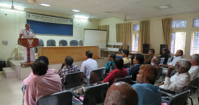 A special programme on “Stingless beekeeping” was organised at ICAR-KVK, Kasaragod on January 24, 2023 in collaboration with Kasaragod Rural Development Society and Horticorp, Kerala. The programme was inaugurated by Dr. Manojkumar T. S., Head of the ICAR-KVK, in his opening remarks highlighted about the importance of honey bee in agriculture and its potential for subsidiary income generation of smallholding farmers. Dr. Benjamin Mathew, SMS-Horticulture, ICAR-KVK, Kasaragod, delivered the welcome address and briefed the entrepreneurship potentials and opportunities in stingless bee farming in Kasaragod district. Mr. Benny Daniel, Programme Officer, Horticorp, Kerala handled the technical session on stingless bee farming methods, bee colony maintenance, honey extraction and marketing potential of the honey. The meeting was concluded with an active interactive session by participating farmers and made them confident to initiate this as an entrepreneurship activity. Mr. Charley Mathew, President, KRDS, Kasaragod, delivered the vote of thanks. A total of 25 farmers participated in the programme.